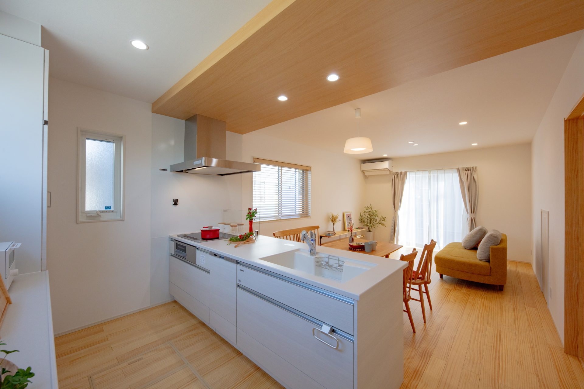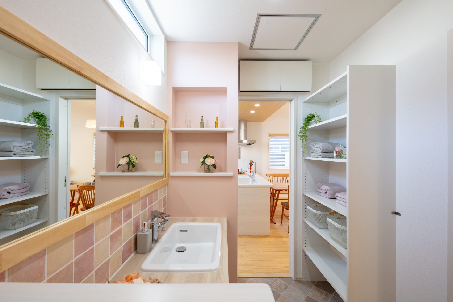 キッチンから洗面所に直通する家事がラクラクの動線設計。
