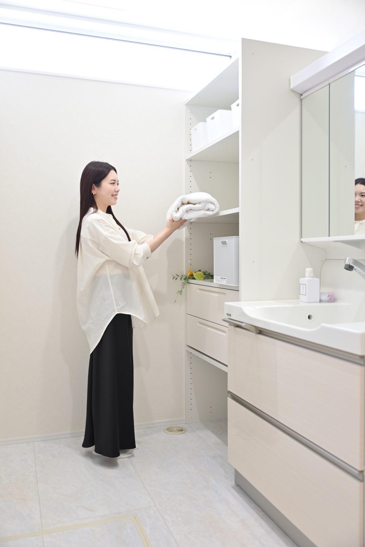 玄関から洗面室が近く、手洗いしてからリビングへ行くクリーン動線も実現。