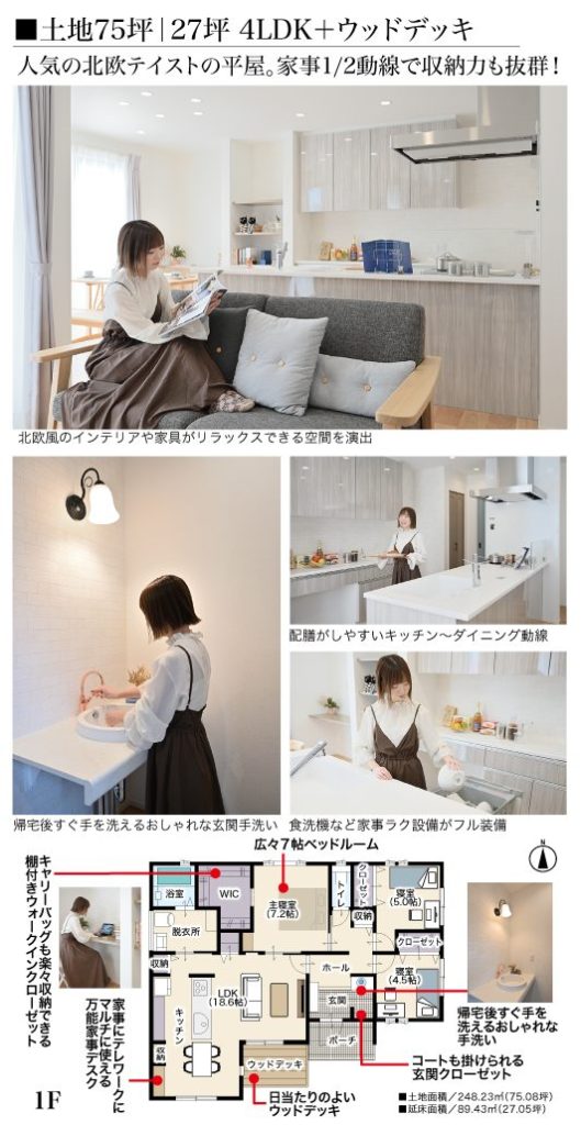 | 土地面積 | E号地 248.23㎡ / 75.08坪 | 建物面積 | 89.43㎡ / 27.05坪 |