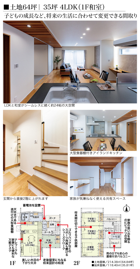 | 土地面積 | 3号地215.14㎡(65.07坪) | 建物面積 | 118.40㎡ / 35.81坪(延床) |
