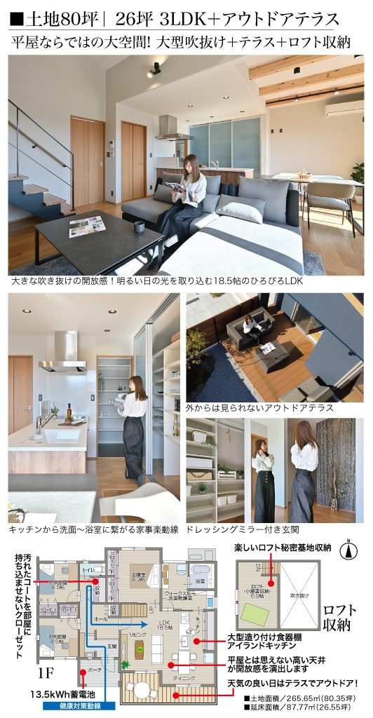 | 土地面積 | 265.65㎡ / 80.35坪 | 建物面積 | 87.77㎡ / 26.55坪 |